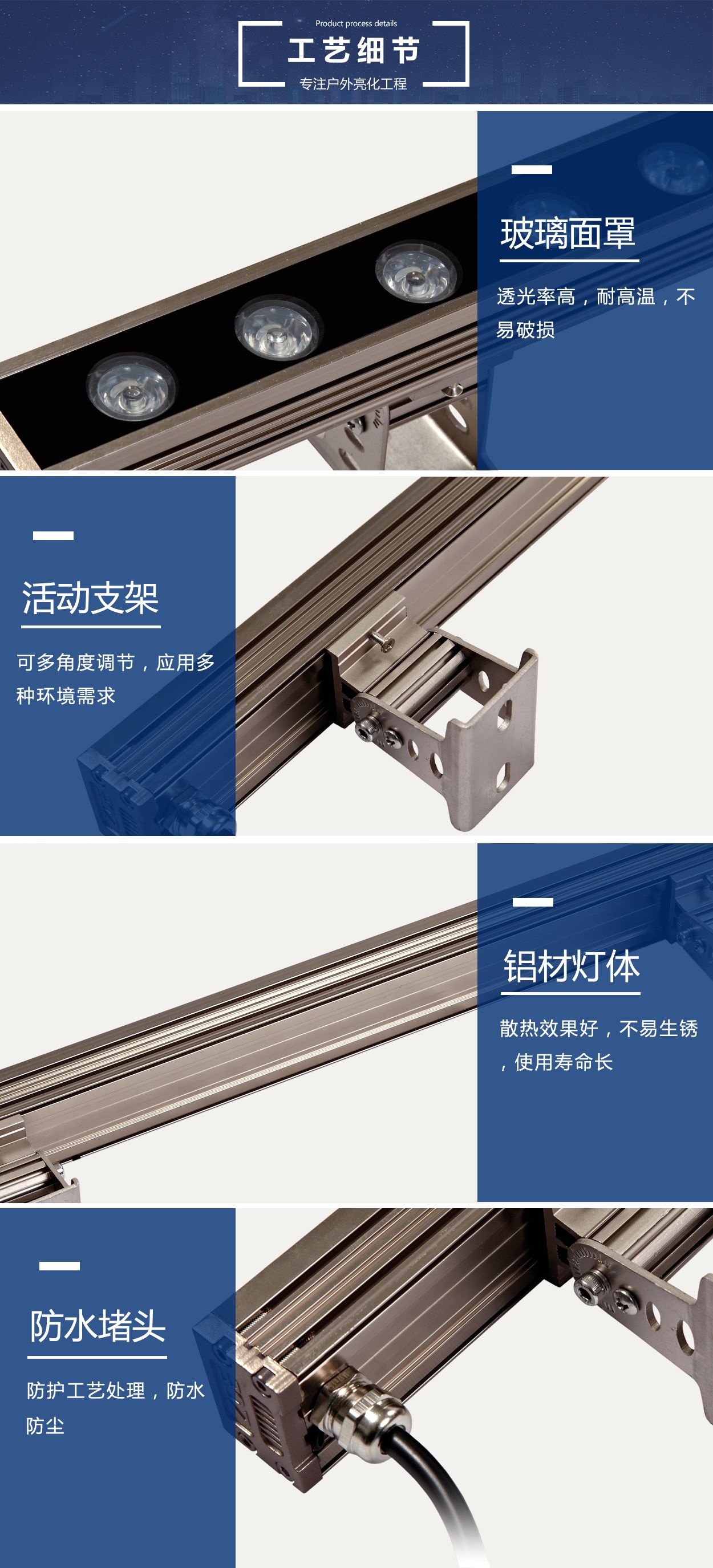 桥梁投射36W墙体景观亮化结构防水LED洗墙灯