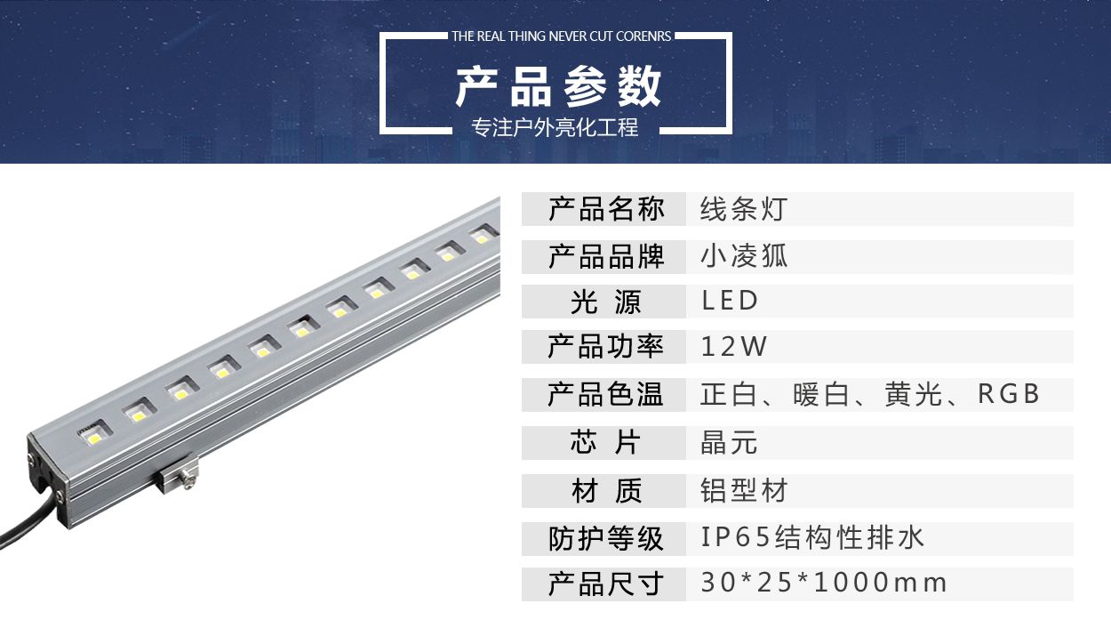12W线条灯暖白金黄跑马七彩防水护栏数码管