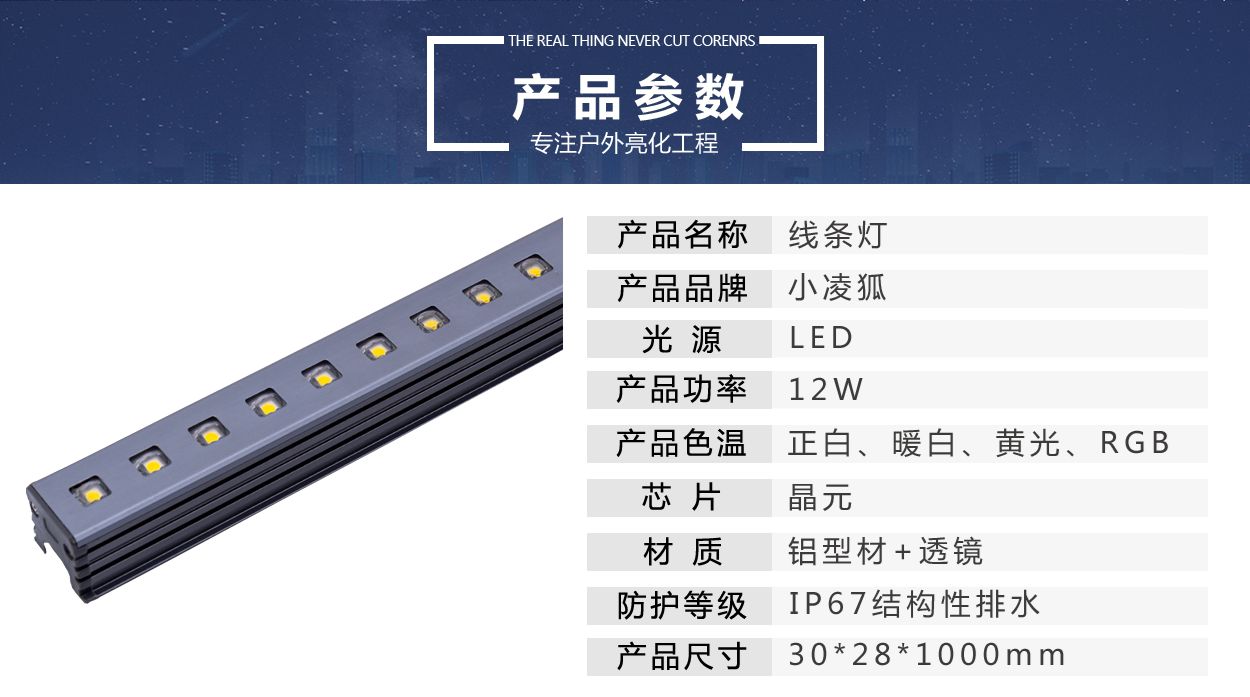 LED线条灯12W户外楼体防水灯桥梁酒店外墙灯具
