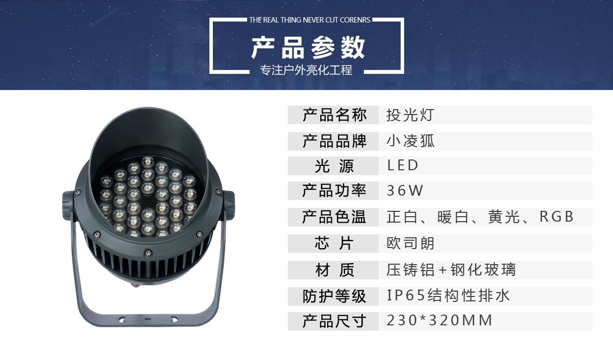 户外全彩外控36W车轮款遮光投光灯景观投射灯