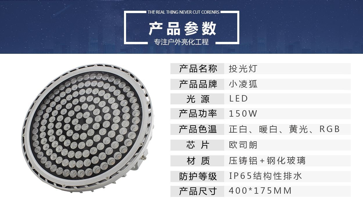 150W户外防水RGB全彩投光灯小区外墙照射灯