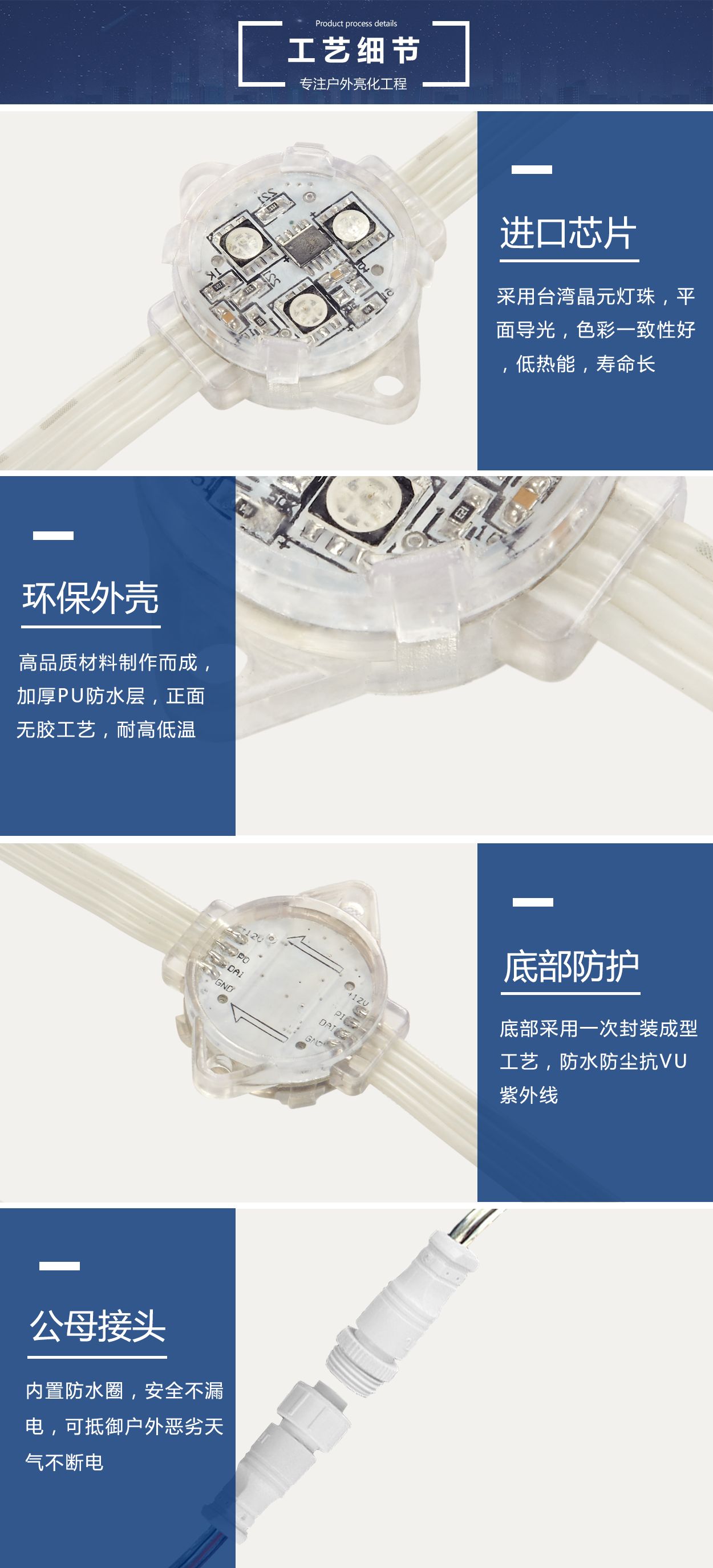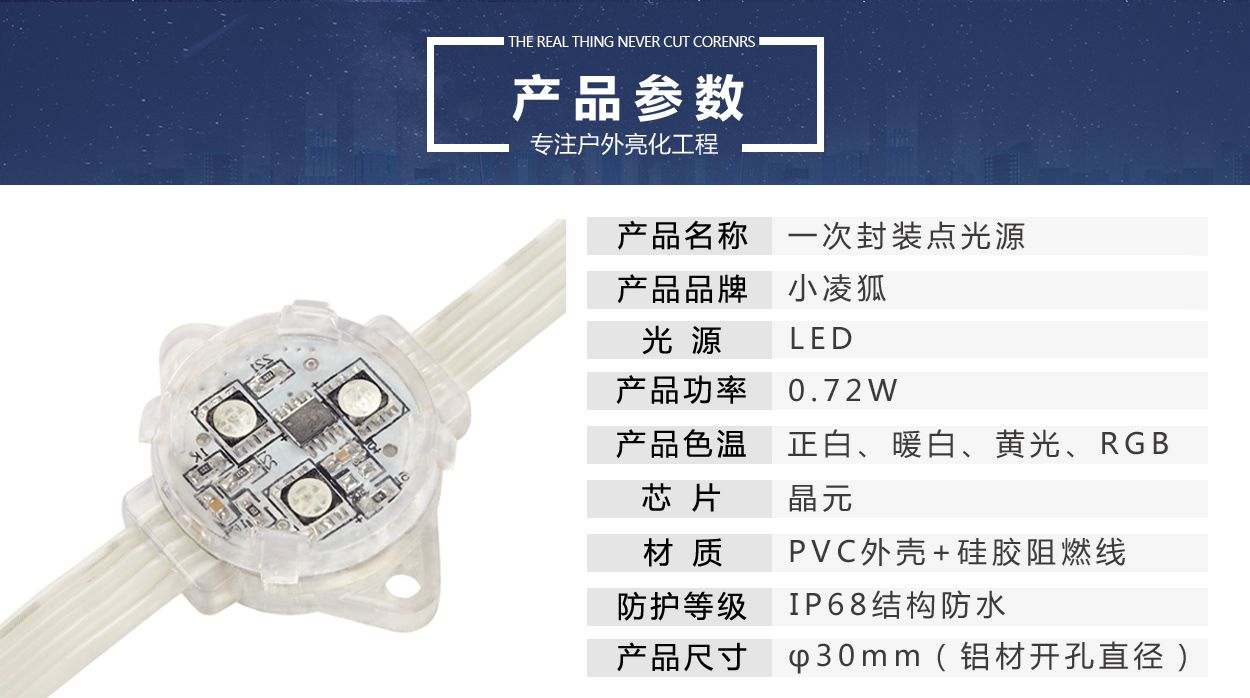 5公分一次封装点光源户外防水七彩单色亮化工程
