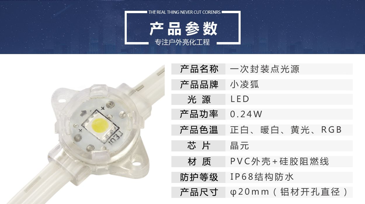 2公分LED防水户外一次封装点光源七彩像素点阵屏