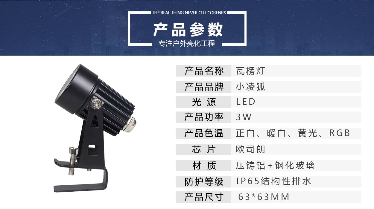 LED户外防水瓦片小射灯瓦楞灯3W投射灯