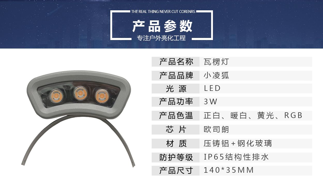 瓦楞灯户外防水LED瓦片灯古建筑凉亭景观3W彩色射灯